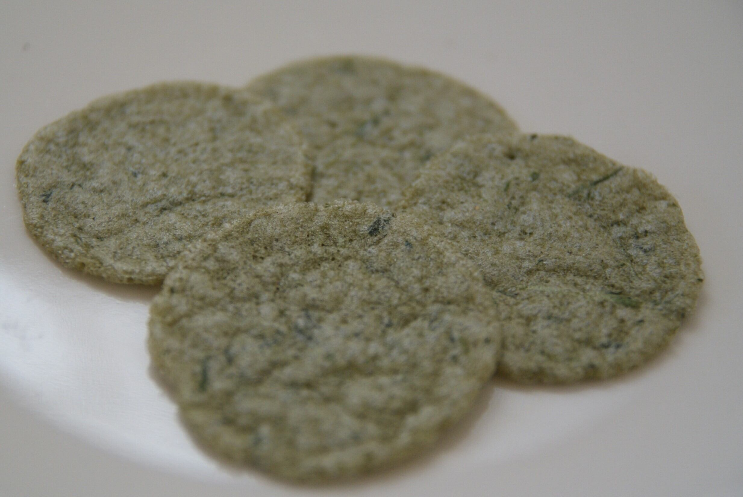 椎茸ベースの煎餅に、よもぎをたっぷり加えたお煎餅です。